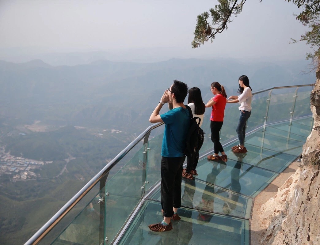 天下尾批天量公园,北太止精髓山川,看瀑布,走玻璃栈讲,奇逢猕猴